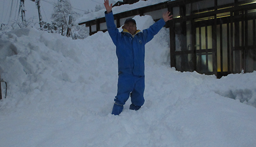 昨年の12月18日からの初雪は一気に豪雪となりました。幹線道路はストップし、私の地域は停電が5日間続きました。湿った雪のため、地域の約4キロメートルに渡る市道・農道には100本以上の倒木が発生しました。かんじきを履き、町内会長と被害を見て回りました。 |